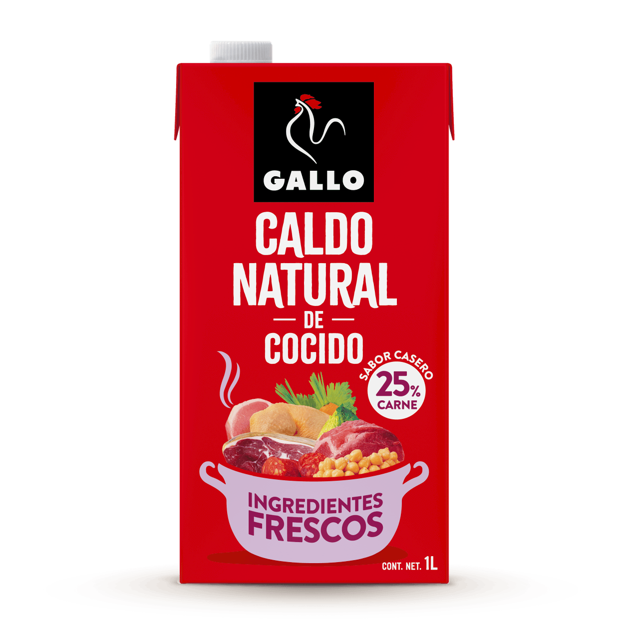 El Caldo de Cocido de Gallo está elaborado con un 27% de carne (pollo fresco, falda de ternera, paleta de cerdo, chorizo y jamón curado), verduras frescas, una pizca de sal ¡y nada más! Prepáralo con nuestra pasta de siempre para tener una combinación perfecta: un gran caldo para una gran pasta.